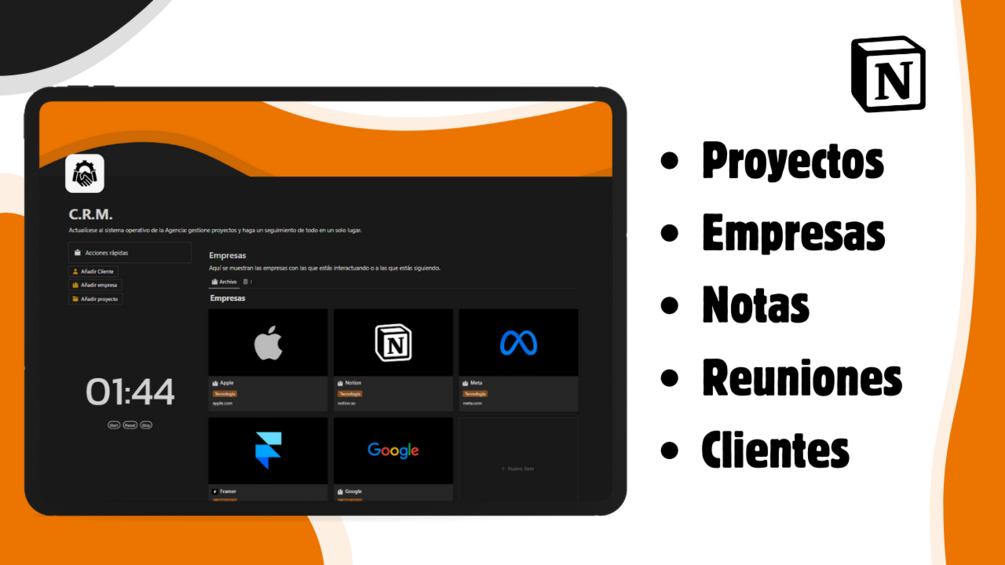 Seguimiento Organizado de Proyectos Relacionados con Clientes: Con nuestra plantilla de CRM, podrás llevar un seguimiento detallado de todos los proyectos relacionados con tus clientes. Desde propuestas de ventas hasta implementaciones de servicios, tendrás una visión clara del estado de cada proyecto y podrás garantizar una entrega oportuna y de calidad.